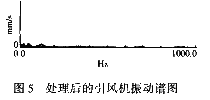 該引風(fēng)機(jī)更換了自由端軸承和齒式聯(lián)軸器后,振動值正常(表1),頻譜見圖5。運(yùn)行狀況一直很好。